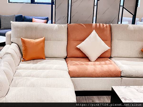 顏色都可以客製化,原廠照片上灰色沙發在現場也看得到。